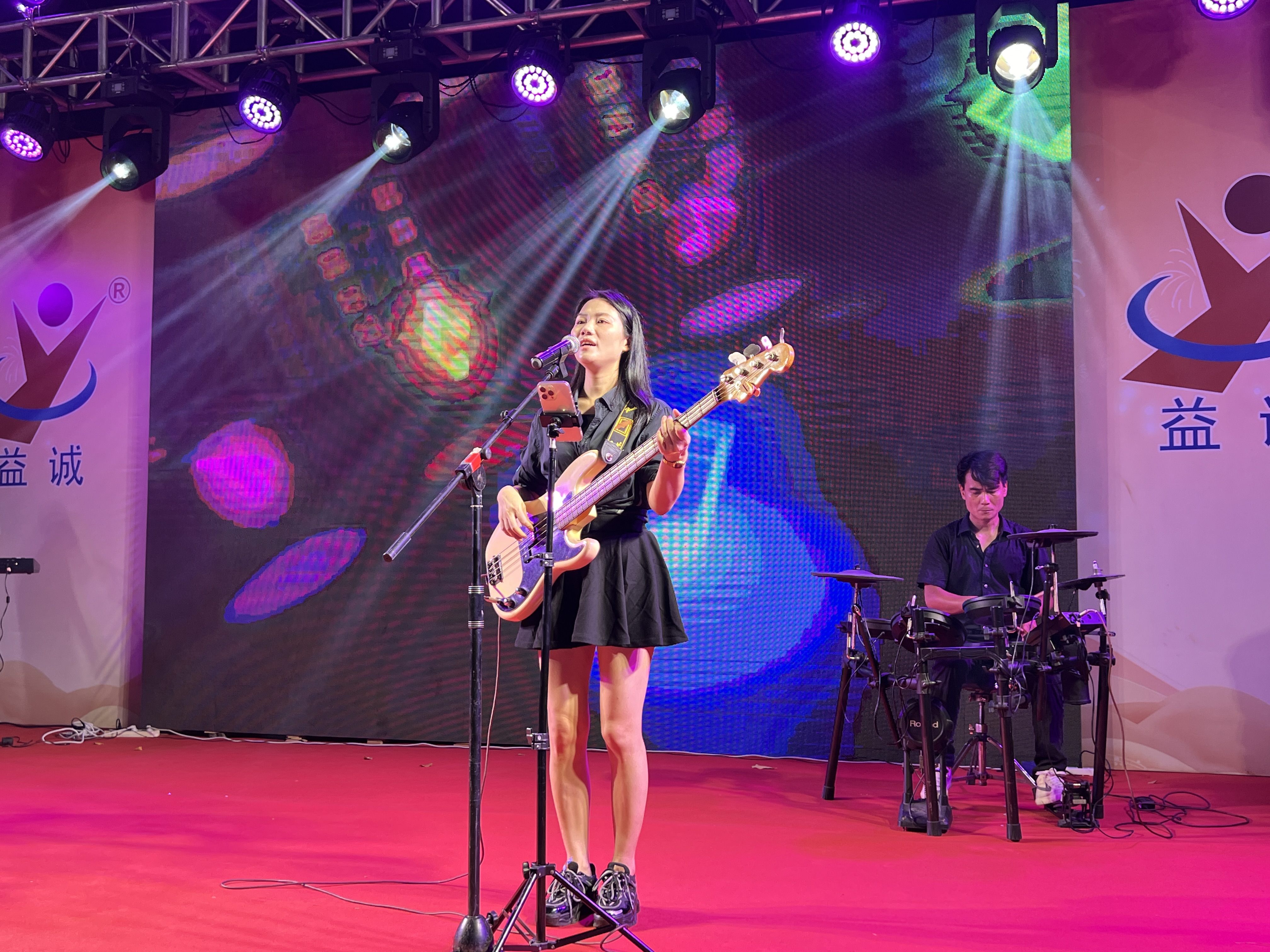 晚會由樂隊(duì)演奏激情開場,吉他、貝斯與鼓點(diǎn)交織,瞬間引燃全場;舞者隨音樂翩躚,動作柔美如風(fēng),光影間盡顯優(yōu)雅姿態(tài);歌手深情演繹經(jīng)典情歌;小提琴旋律悠揚(yáng)動人;二人轉(zhuǎn)表演幽默詼諧,互動趣味十足,笑聲與掌聲迭起,將晚會一次次推向高潮。