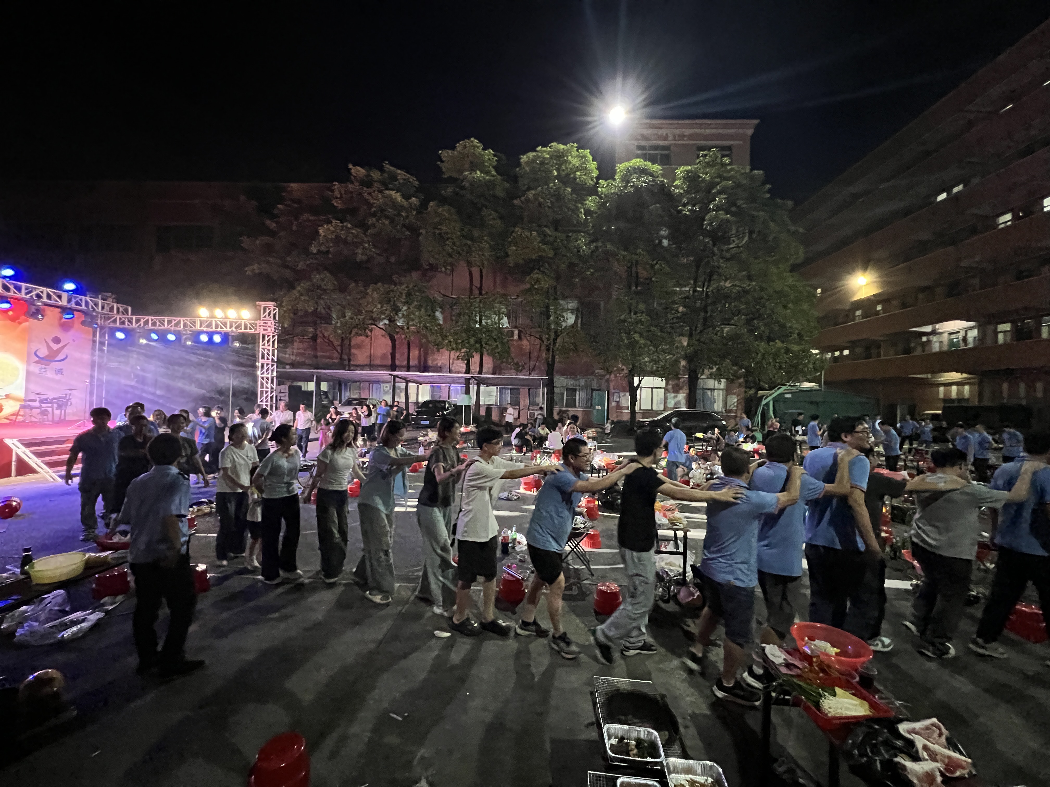 夜色漸濃,情誼愈深。隨著主持人一聲“開小火車?yán)玻?rdquo;,益誠家人們在笑聲和歡呼聲中迅速組成一條“長龍”,大家搭著肩,蜿蜒穿梭活動現(xiàn)場,載著喜悅奔向月光。