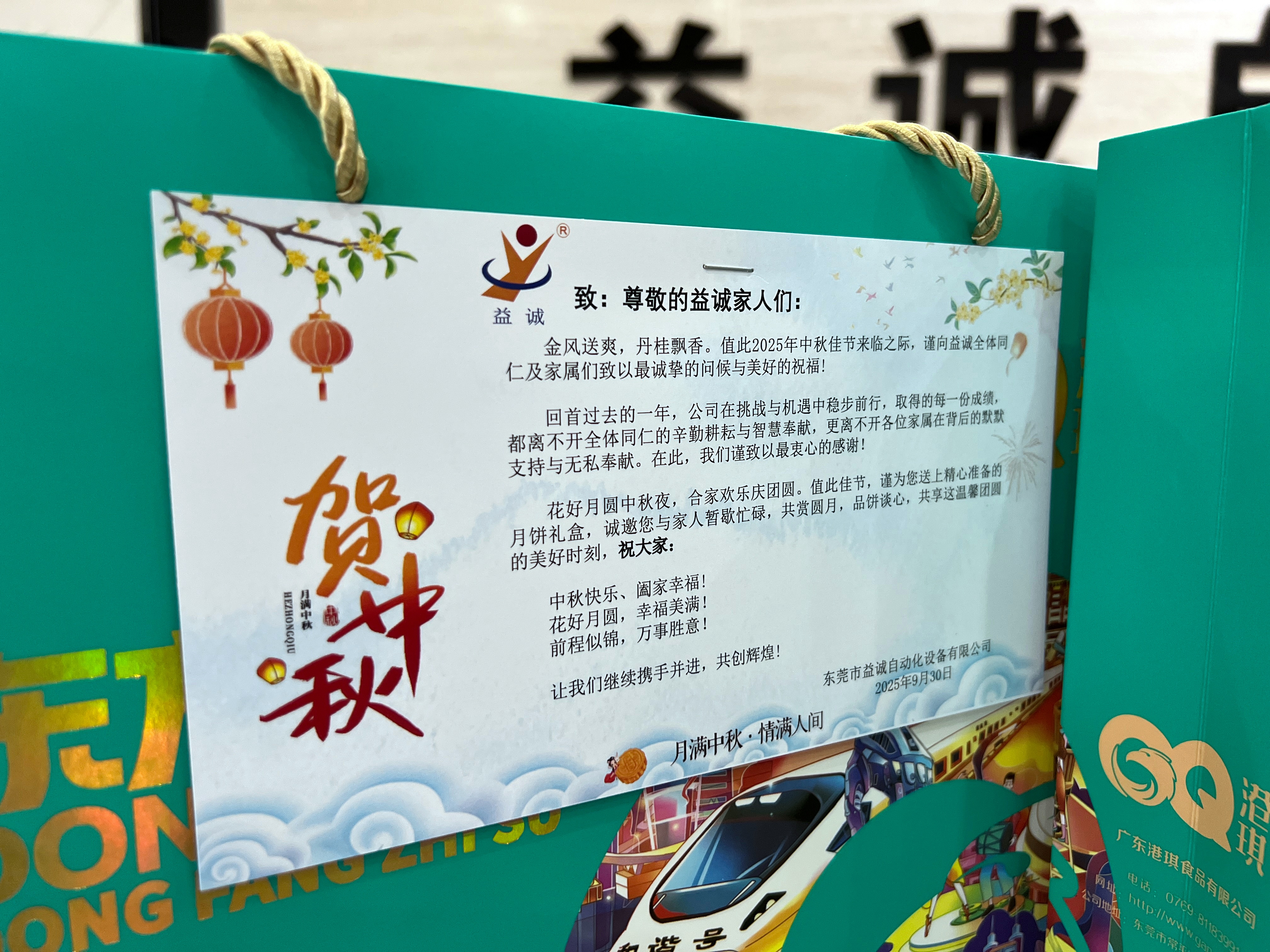 2025年9月30日,中秋佳節(jié)將至,益誠為全體成員奉上節(jié)日福利。這份年復(fù)一年的心意,不僅承載著公司對各位伙伴辛勤付出的誠摯感謝,也寄托著對大家未來的美好祝愿。